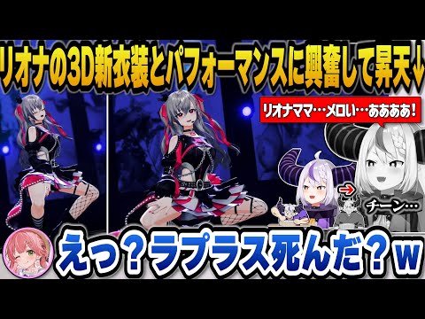 ホロライブのラプラス・ダークネスが、響咲リオナの3D新衣装ライブを視聴中に興奮し、とんでもない反応をし